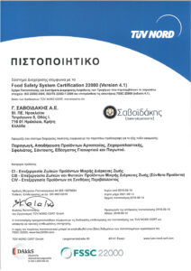 Η Εταιρεία έχει επενδύσει και συνεχίζει να επενδύει στην εφαρμογή συστημάτων ποιότητας και ασφάλειας των τροφίμων. Πολύ πριν πιστοποιηθεί για την εφαρμογή συστημάτων ποιότητας και ασφάλειας τροφίμων, εφάρμοζε διαδικασίες ποιότητας και προληπτικής υγιεινής. Από το 2004 είναι πιστοποιημένη για την εφαρμογή Συστήματος Ποιότητας σύμφωνα με το πρότυπο EN ISO 9001 και από το 2005 για Σύστημα Προληπτικής Υγιεινής Τροφίμων HACCP στις παραγωγικές διαδικασίες. Πρόσφατα πιστοποιήθηκε και για την εφαρμογή του συστήματος Διαχείρισης Ασφάλειας των Τροφίμων ΕΝ ISO 22000:2005.